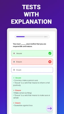 Perfect for English exam preparation! Whether you're studying for IELTS, TOEFL, PTE, GRE, or other tests, this app helps sharpen your vocabulary, grammar, spelling, and usage skills.
