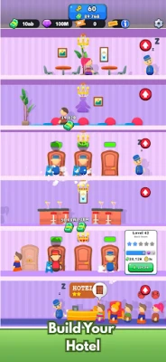 Operate your hotel, expand floor by floor, and improve every room. Serve crowds and unlock the next-level hotel experience.