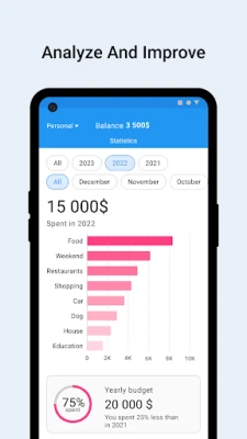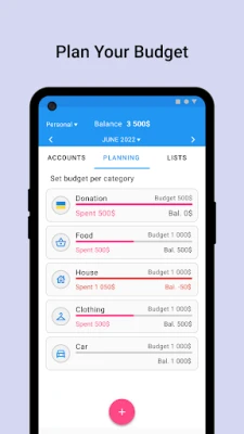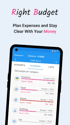 Simple steps to budgeting: 1. Download the application 2. Sign in via Google or register 3. Plan and control expenses 4. Analyze and improve your budget