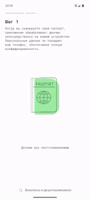 Приложение обеспечивает безопасную верификацию личности, используя сканирование чипа биометрического паспорта. Все данные обрабатываются непосредственно на вашем устройстве и никогда его не покидают, что гарантирует полную конфиденциальность и защиту личной информации. После успешной верификации для пользователя создается уникальная цифровая идентичность, которая в дальнейшем может быть использована для участия в опросах.